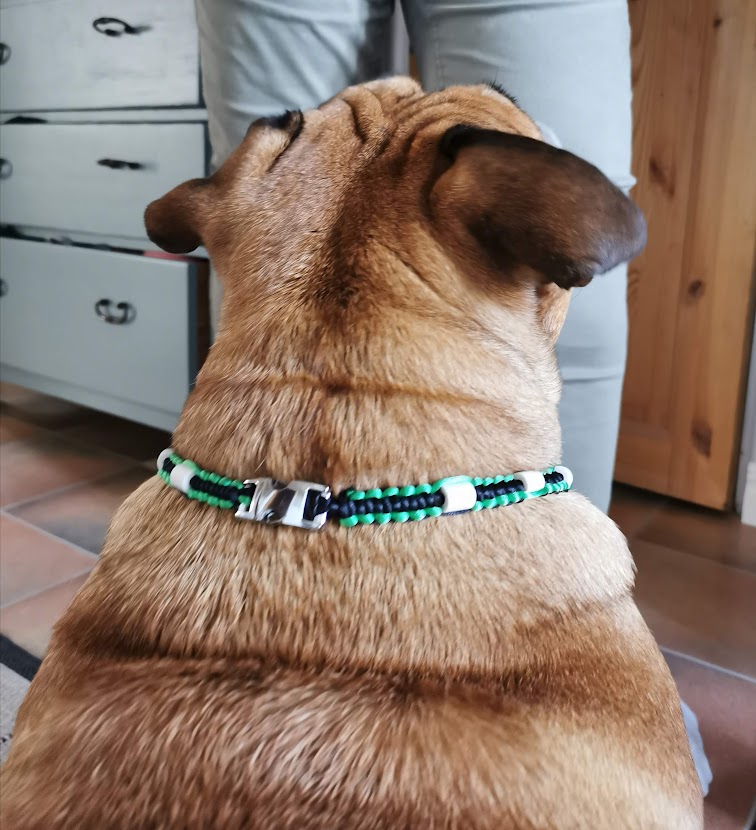 Hör av dig om du är intresserad. Då kan jag berätta för dig hur du kommer att mäta måttet. Nedan finns de färger att välja mellan. Priserna varierar mellan 150 kr och 225 kr, beroende på storleken. Jag gör gärna ett halsband till din vove, katt eller dig själv.